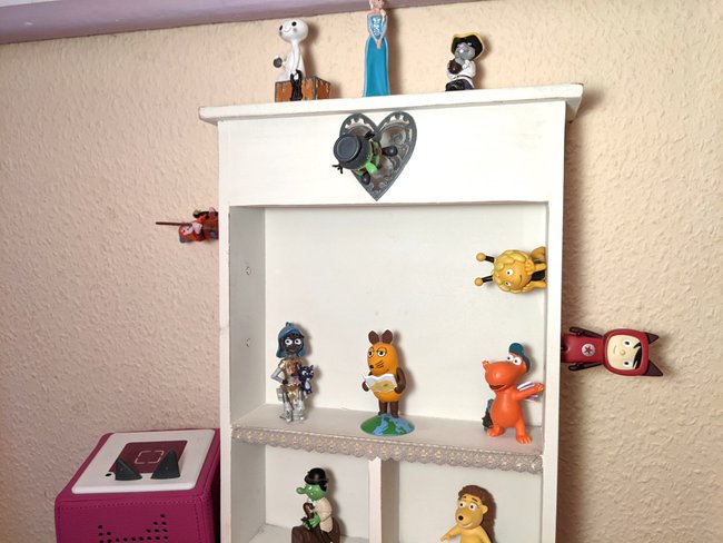 - Überlegt euch, wo ihr überall Tonies hinstellen wollt. Diese Magnete sind zwar klein, aber halten bombig. Ihr könnt die süßen Figuren also wirklich auch außen ranmachen oder unten über Kopf hängen lassen.