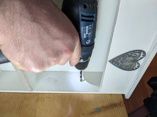 - Zeichnet die Stellen an und bohrt dann vorsichtig mit dem Akkuschrauber kleine Löcher. Die müssen einen Tick größer sein als die Magnete.