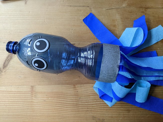 Mit ihren schlabbernden Tentakeln sind Quallen sehr fröhliche Motive. Mit einer Plastikflasche lassen sie sich einfach zu einer Laterne machen.