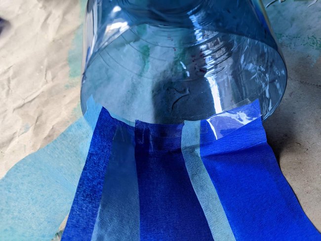 3. Klebt die Bänder überlappend von innen mit Klebeband in die Flasche.