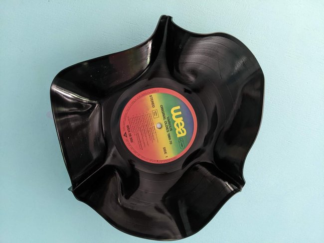 Ohne üble Gerüche und mit wirklich wenig Aufwand, könnt ihr aus einer alten Platte eine stylische Schale machen. Ob für Obst, Schokoriegel oder einfach Krimskrams – damit holt ihr euch auf jeden Fall individuelles Vintage-Flair nach Hause.
